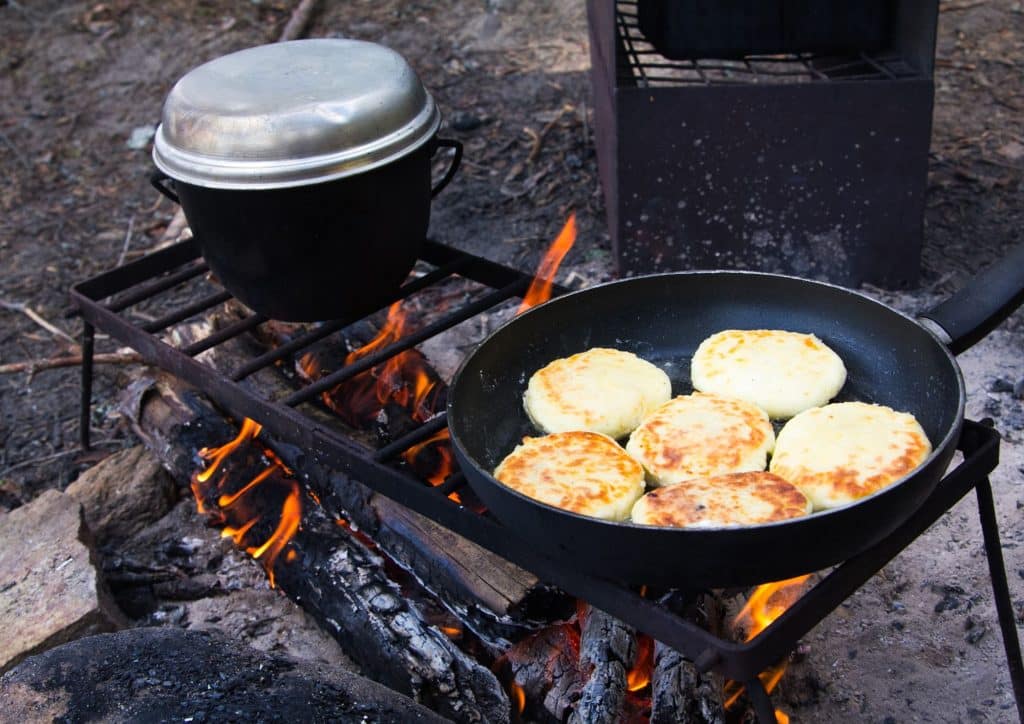 השיטה הפשוטה ביותר היא צלייה על אש פתוחה, המתבצעת בשיפודים או רשת מתכת מעל גחלים חמים. לטיגון בשטח מומלץ להשתמש במחבת יציקה שמחזיקה חום באופן אחיד ומאפשרת שליטה טובה יותר בתהליך הבישול.
